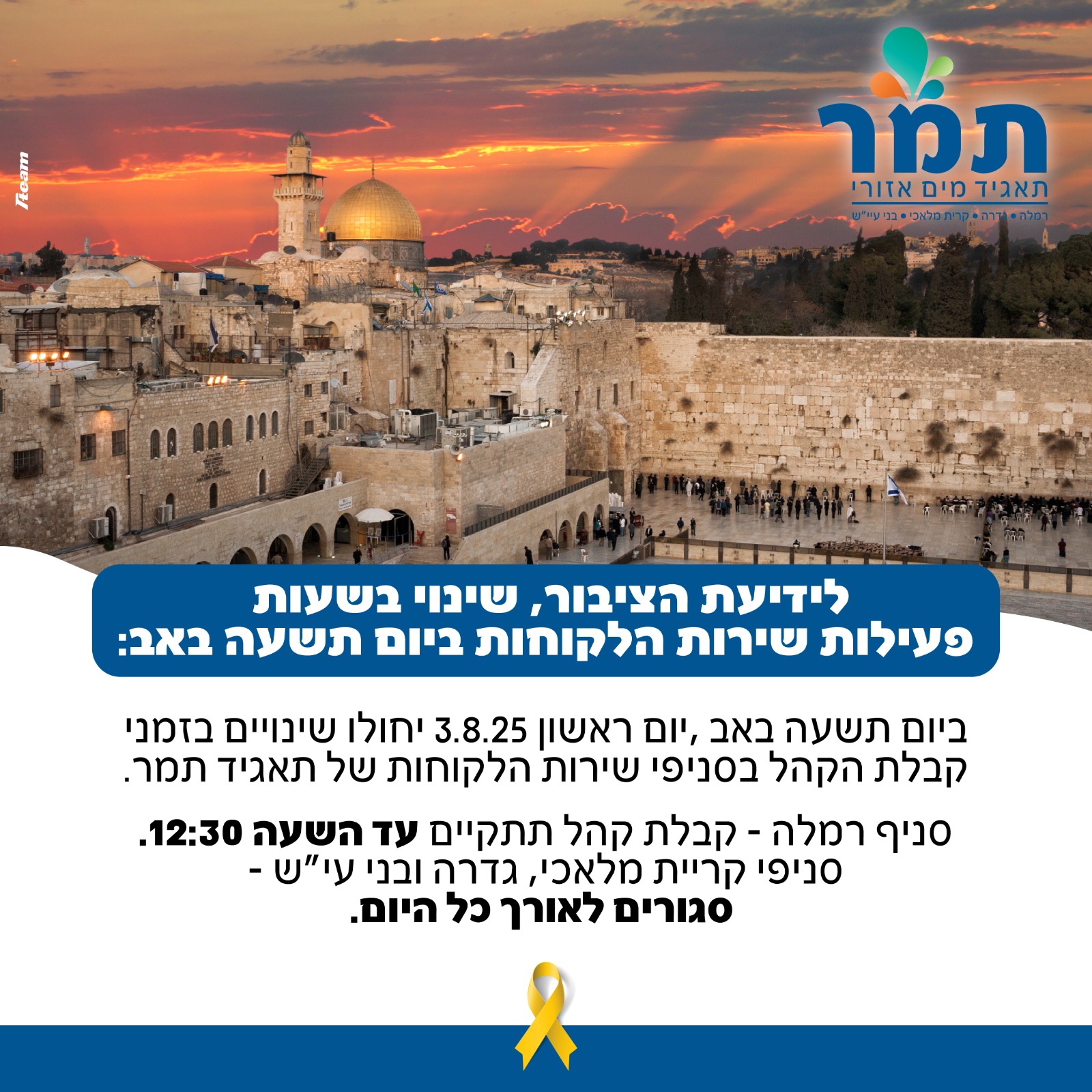 שינוי שעות הפעילות ביום תשעה באב